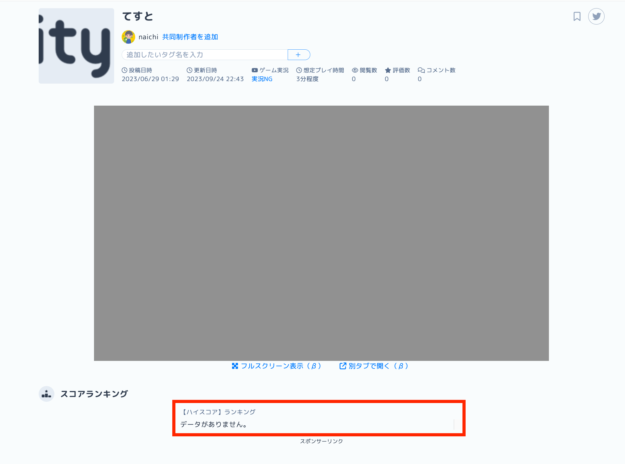 - ゲームページのスコアランキングセクションに自分のレコードが追加されれば成功です。